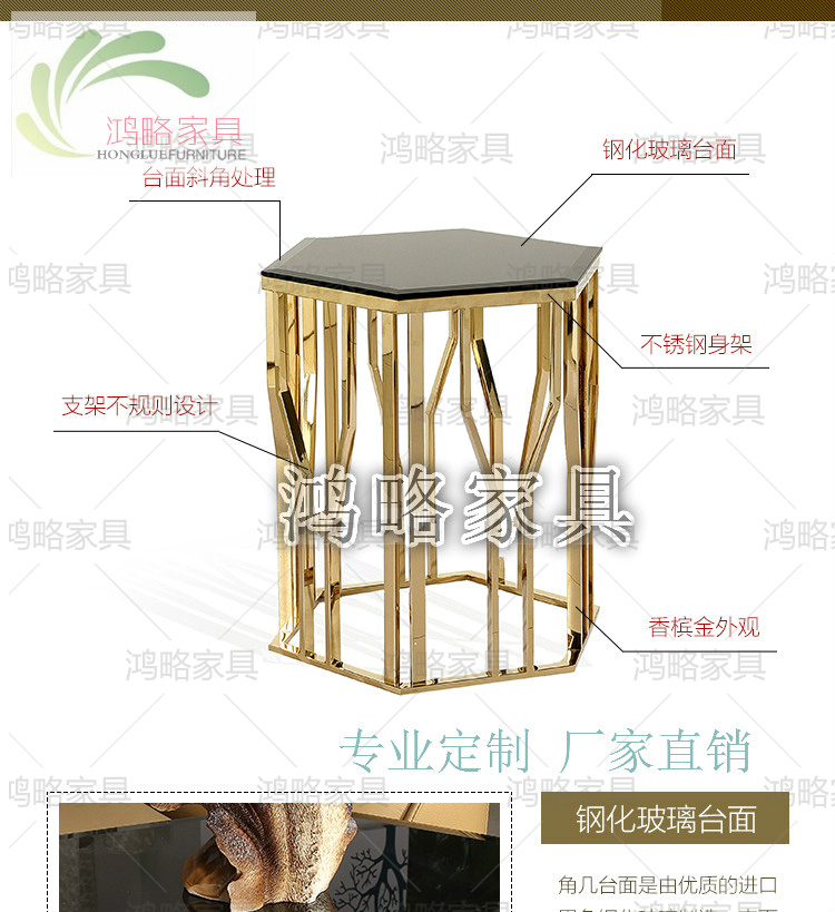 现代不锈钢六边形茶几销售